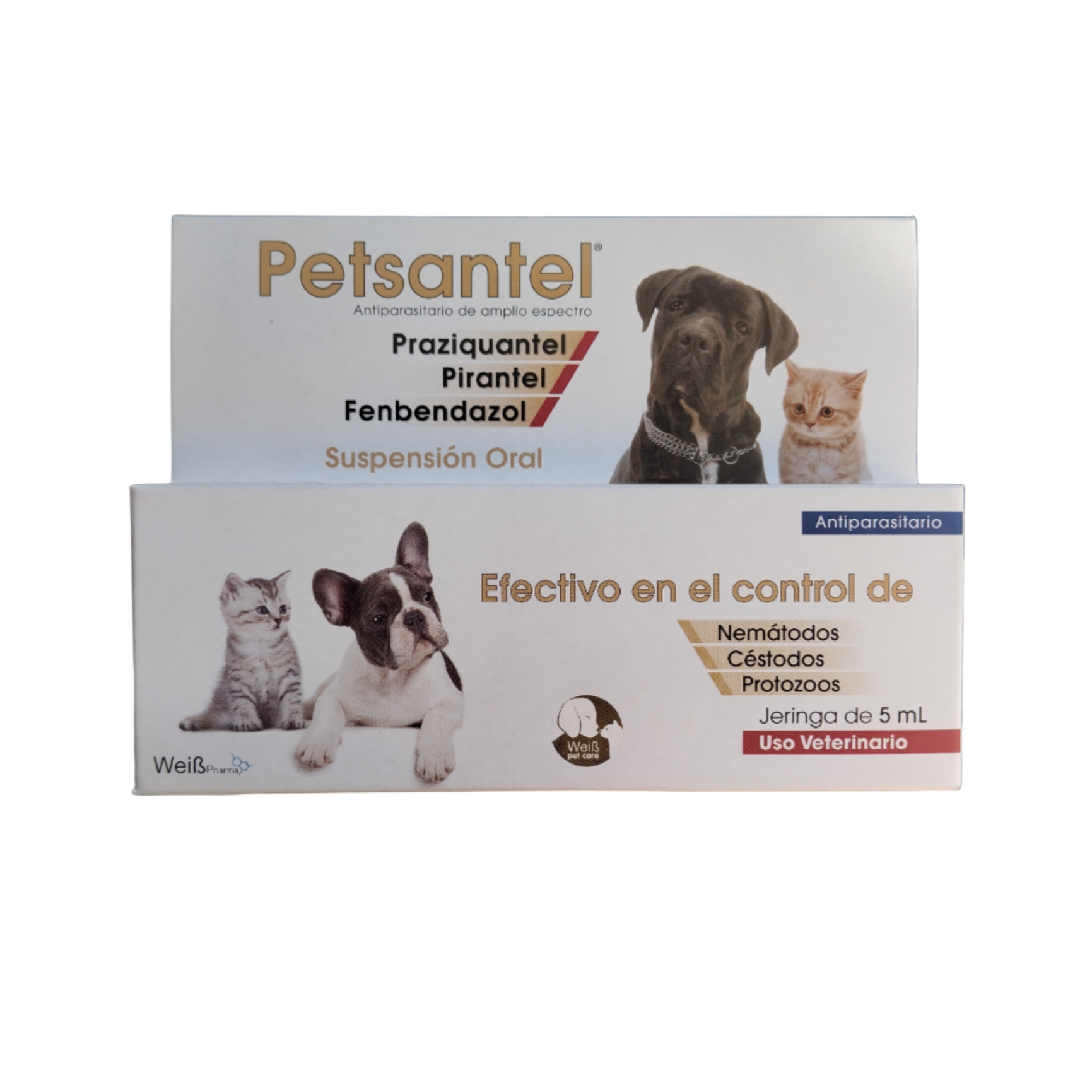 Antiparasitario de amplio espectro: Praziquantel, Pirantel, Fenbendazol.