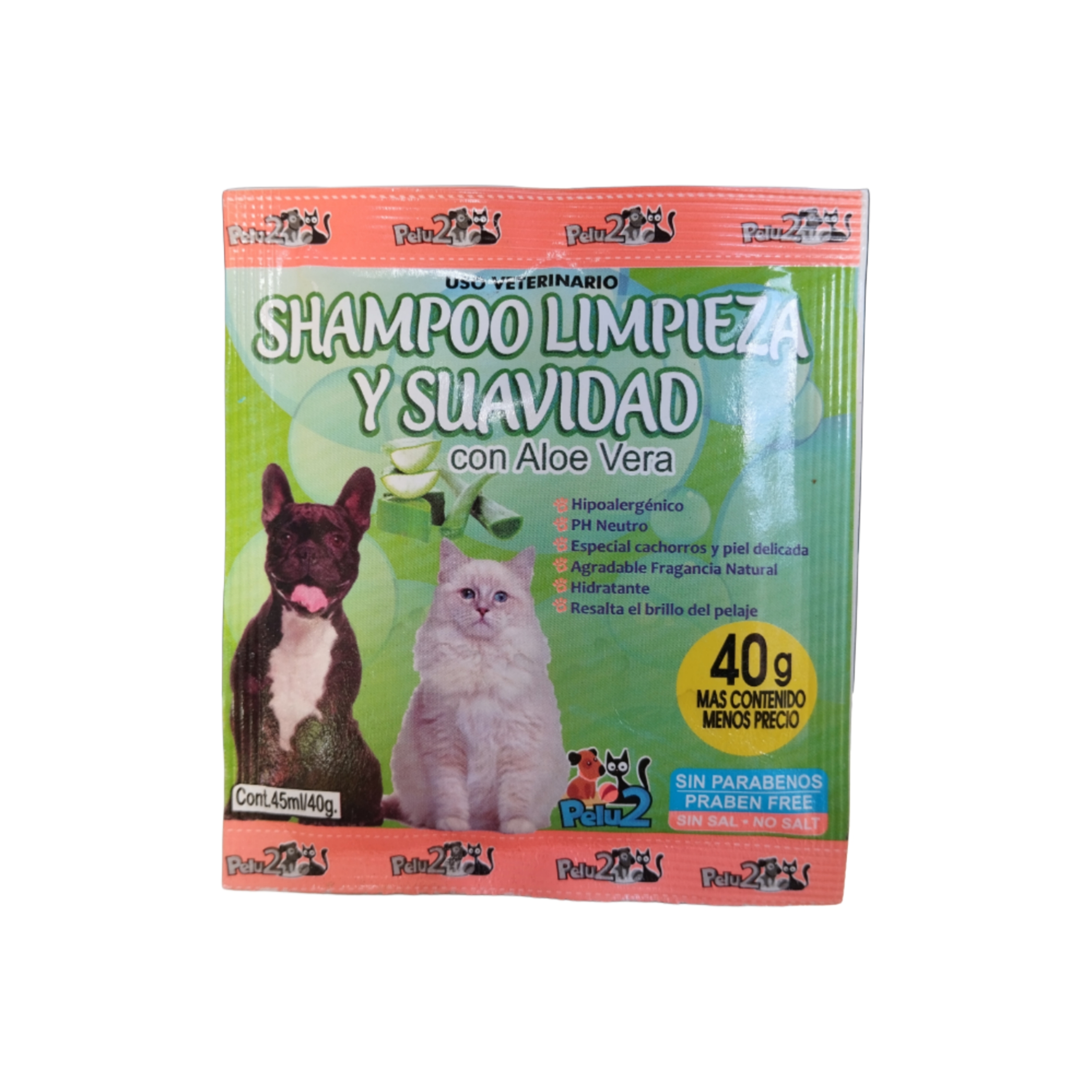 El Shampoo Pelu2 ALOE VERA, combina las propiedades de la planta y esta indicado con los beneficios para proteger la piel y el pelo de perros y gatos